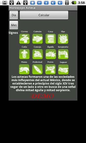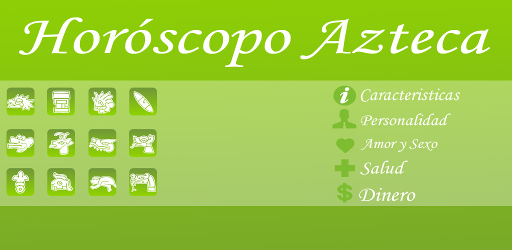 - Aztec membentuk salah satu perusahaan paling berpengaruh di Meksiko saat ini, di mana mereka menetap di awal abad keempat belas setelah berkeliaran dari satu tempat ke tempat lain untuk mencari tanda ilahi setengah elang dan setengah serpiente.- Dapatkan fitur dari tanda, kepribadian Anda, kepribadian Anda (*), Love and Sex (*), Health (*) dan Money (*) Versi Lengkap: https://market.android.com/details?id=appinventor.ai_sofi_seitz.horoscopoazteca(*) hanya di versi lengkap