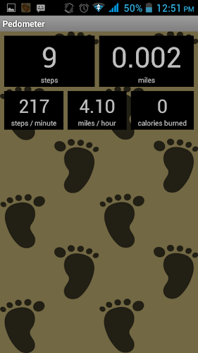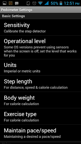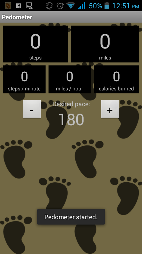 aplikasi ini menghitung jumlah langkah seorang pelari dan konsumsi kalori. `#}Anda dapat menentukan jarak yang ditempuh, kecepatan dan laju.