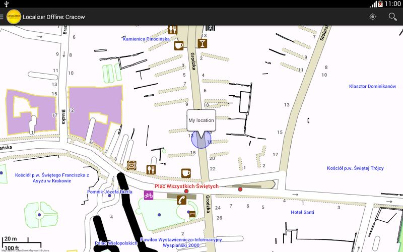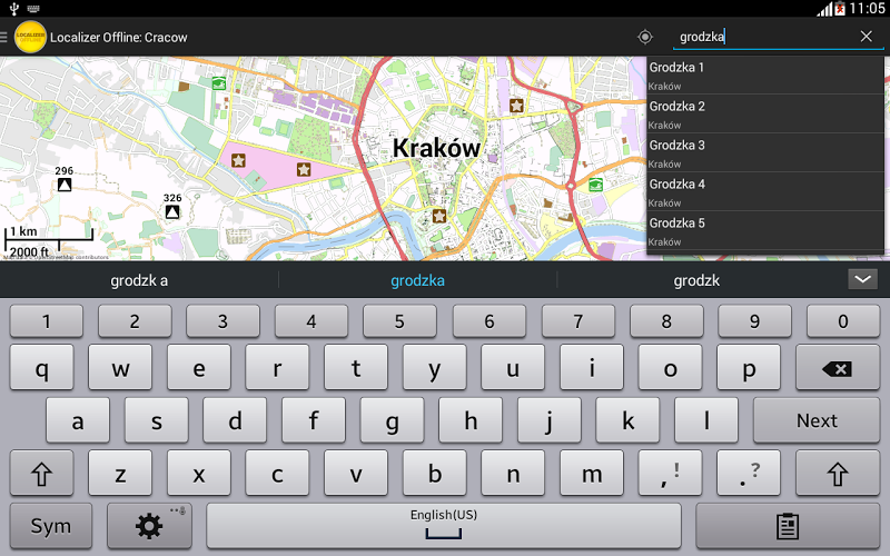 localizer offline: cracow ”termasuk Peta vektor dengan penomoran yang sangat tepat dari bangunan dan ribuan POI. Anda juga dapat mengatur rute dan memeriksa panjang dan waktu perjalanannya.