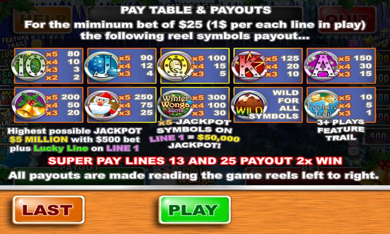 Musim Dingin Wonga Slot Mesin Slot Kasino Tema Natal 5x3 di mana Anda dapat memenangkan uang tunai virtual! Cobalah untuk memenangkan sebanyak mungkin uang tunai dengan juga memainkan fitur -fitur seperti jejak fitur dan fitur Hadiah:...