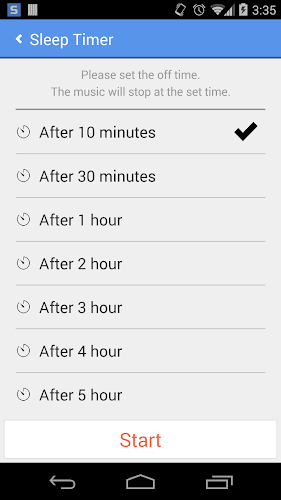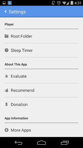 5. Menu Opsi Menyediakan Pilih folder tingkat atas dan menu timer tidur.