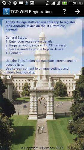 Trinity College staff can use this app to register their android device on the Trinity Staff Wi-Fi service.The app asks you to manually enter details such as your MAC (Wi-Fi) Address, Duration, username. Additonally, Device Name & Android...