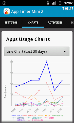 Know how you use your apps, chart & statistics, usage alert, chart, password.
