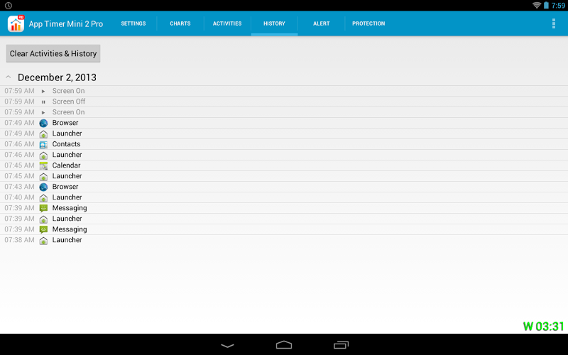 *** Now support Android 5 / lollipop ***This is a time management tool for managing and analyzing your time spending on apps. How much time you spend on your favorite apps? Do you spend too much on games? We always forget the time when we are enjoying our apps!