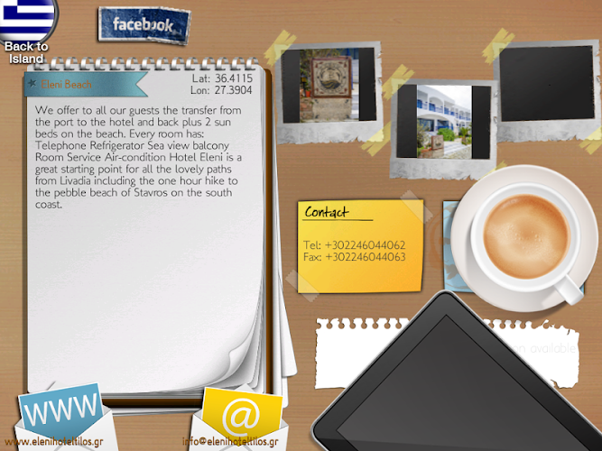 Smart-Tilos offers a complete and accurate information system for the Greek Tilos island displayed on a 3D-background. Smart-Tilos is a Location-Based, multimedia iPad App providing information on travelling, accommodation, entertainment, leisure, history, weather, health, public issues, and many other.With Smart-Tilos you can: