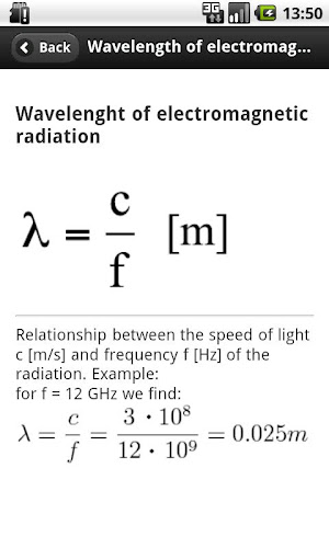 Radio Links Formulas collects the most important formulas about electromagnetic waves and radio links.The app make it easy to study complex questions about math and physics.