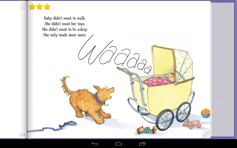 The storybook pages feature interactive puzzles, soundboards and questions.