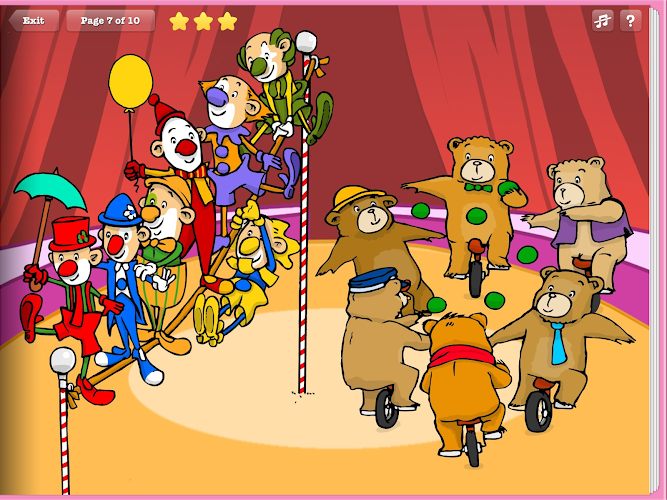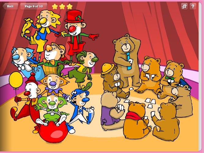 Kids will learn counting and numbers in this fun game about a circus!Come one. Come all. It’s circus time! But this is no ordinary circus. Here you’ll be entertained by a bunch of funny clowns and some cool bears. But can you tell what there are more of? Are there more clowns or bears? In this game your child needs to count and decide.