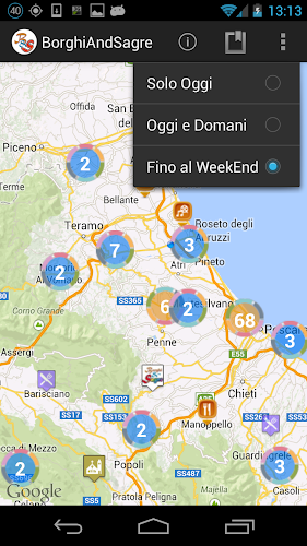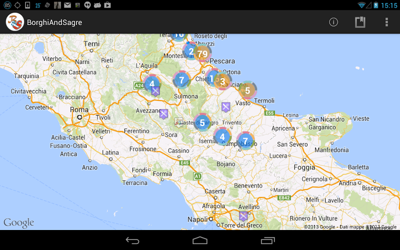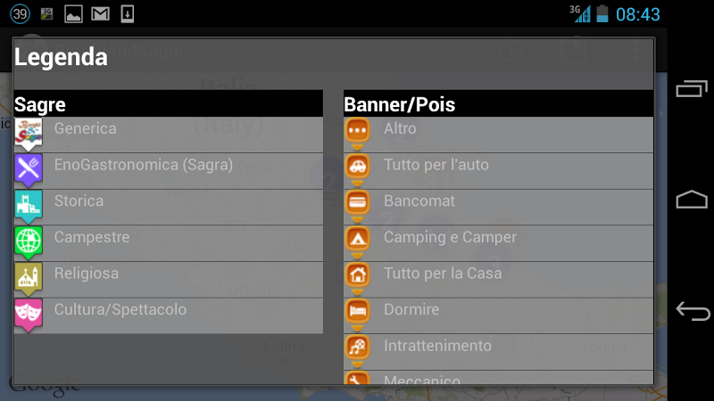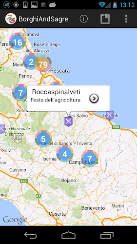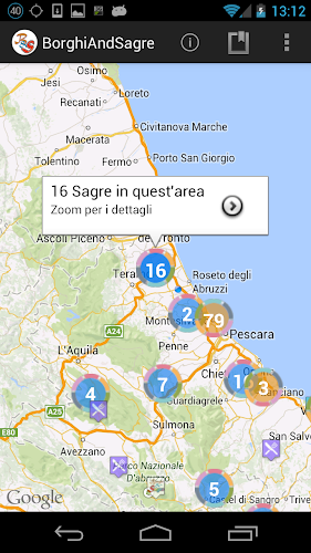 thanks to it you will easily understand the distance from every village festival or shown on the map-> completoborghi of network access and festivals uses the connection to the Internet to download and be up to date events in progress and to receive data from Google Maps->