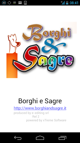 you can also choose to send email to you or your friends for reminders or to report an event interesting-> full network access - the reteborghi connections visualization and festivals uses your Internet connection to download and obtain the manifestations being constantly updated and