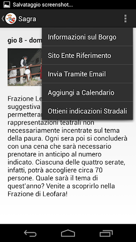 you can mark it on your calendar reminders favorite festivals, invite your friends and look for the best way to get prima.puoi purchase directly from your smartphone or tablet the typical dishes sold in the festival and pay through pay pal without having to wait in line.
