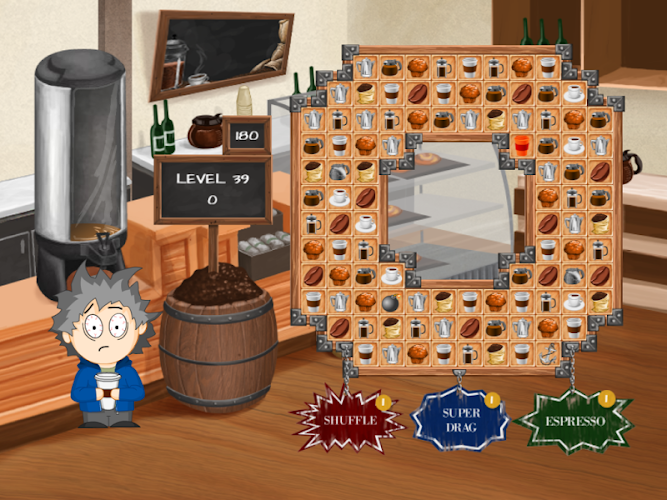 scambia, abbina e prepara la tua birra attraverso oltre 70 livelli di eccitazione frenetica, schiumosa e piena di caffeina in questo avvincente gioco di abbinamento a 3 a tema caffè. abbina le tessere per fornire all'ansioso, nervoso e nervoso dipendente dal caffè la sua prossima deliziosa dose di caffè prima che la flebo si esaurisca e lui diventi completamente fuori di testa!abbina chicchi di caffè, sacchetti di fondi, tazze di caffè, pentole e presse (insieme a prodotti assortiti per la colazione). calma i suoi nervi con un potenziamento per l'espresso, ripristina il tabellone con il potenziamento per la riproduzione casuale o ridisegna le regole con il potenziamento del super trascinamento, ottieni punti bonus se finisci più velocemente e guarda cosa succede quando il fanatico del caffè finalmente si sazia!