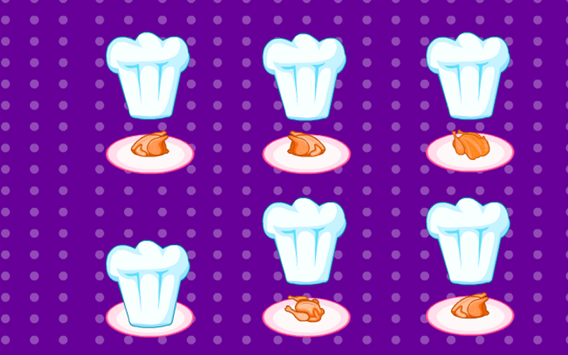 Memoria della cucina chef! Shuffle il cappello da chef per rendere difficile il compito.