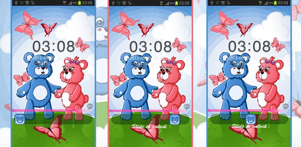 Nuovo Teddy Bears Theme GO Locker può essere scaricato gratuitamente, direttamente dal Google Play Store. Questo tema allegro, dolce, affascinante, pieno di gioia e divertimento per tutti coloro che amano gli animali di peluche. Mostra giocattoli del bambino come due orsi, uno in blu (lui) l'altra in rosso (lei), che giocano sul prato verde. La fata - scenario racconto è ornato con farfalle rosa, svolazzanti contro il cielo blu e nuvole bianche. Tutto è leggero e piacevole, che galleggia tra le nuvole, come la vista dai giocattoli sogni dei bambini. Discussione soprattutto per le ragazze che amano il colore rosa e morbido peluche carino o tutti con emozioni romanticismoSe non si dispone di questo tema, si prega di scaricare il più presto possibile, e lasciare che l'orsacchiotto in diretta sul telefono schermata di blocco