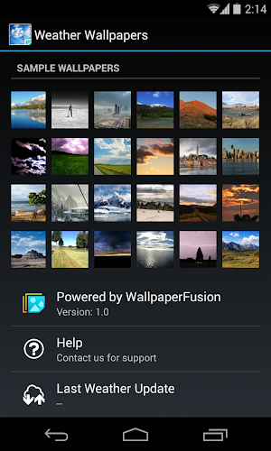 Weather HD Wallpapers di WallpaperFusion ti dà accesso a 100 incredibili immagini di sfondi meteorologiche, utilizzando la posizione attuale del tuo dispositivo per darti immagini pertinenti! Le immagini verranno caricate in modo casuale su un timer e possono essere scale o scurire automaticamente per generare sfondi a contrasto più elevato. Opzione di scura- Opzione per caricare solo immagini su WiFi per salvare su cariche di dati mobili