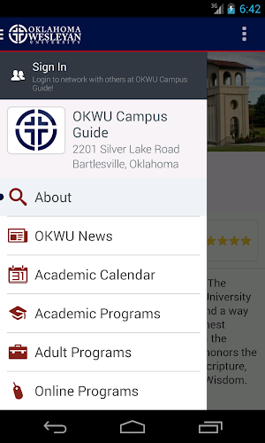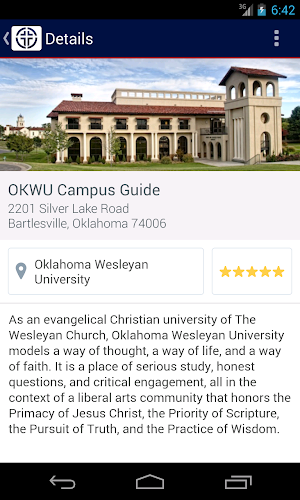 Analisi E Revisione Delle App Android: Oklahoma Wesleyan University, Sviluppato Da Guidebook Inc. Elencato Nella Categoria Viaggi E Info Locali. La Versione Corrente È 2.1, Aggiornata L' 02/11/2017 . Secondo Le Recensioni Degli Utenti Su Google Play: Oklahoma Wesleyan University. Ottenuto Oltre 100 Installazioni. Oklahoma Wesleyan University Ha Attualmente Recensioni 1, Valutazione Media 5.0 Stelle