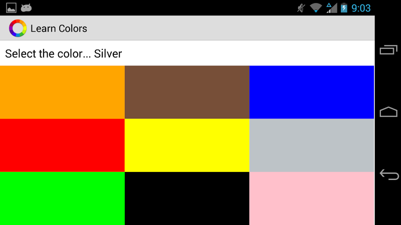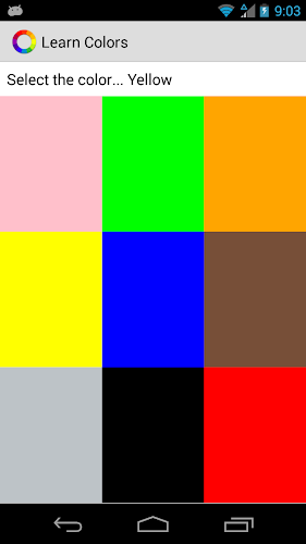 impara i colori è un semplice gioco per Android che ti aiuta a insegnarti i colori di base.Ci sono 9 colori diversi che potrai imparare in questo gioco: