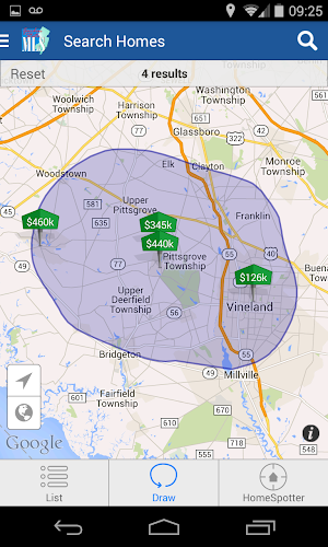 - Disegna strumento - Cerchi case in un'area specifica? Basta disegnare un cerchio sulla mappa per vedere le proprietà nell'area selezionata.