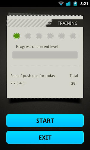 in modalità di allenamento, siediti l'app Farà un piano di allenamento ragionevole in base all'età e allo stato del corpo. Il piano sarà diviso in sei livelli con ogni livello contenente diversi gruppi di situp. Il piano di formazione per il prossimo gruppo o livello si baserà sul risultato di allenamento attuale. In ogni nuovo livello l'app rivaluterà lo stato del tuo corpo per assicurarsi che il piano sia personalizzato.