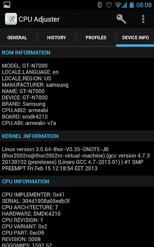 Inoltre si possono reperire informazioni sulla CPU, come il tempo trascorso ad un determinato step, velocità minima/massima del governor e molto molto altro.