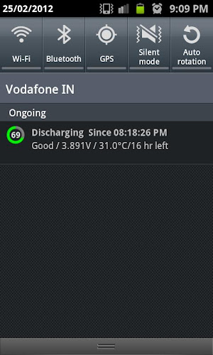 - informazioni sulla percentuale della batteria nell'area di notifica con un'icona attraente. la notifica rimarrà in alto rendendo più semplice vedere le informazioni sulla batteria rimanente anche se la schermata iniziale cambia o l'utente sta lavorando su applicazioni diverse.