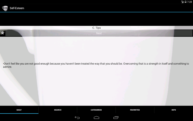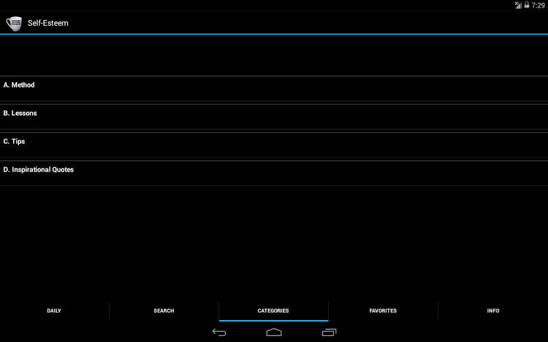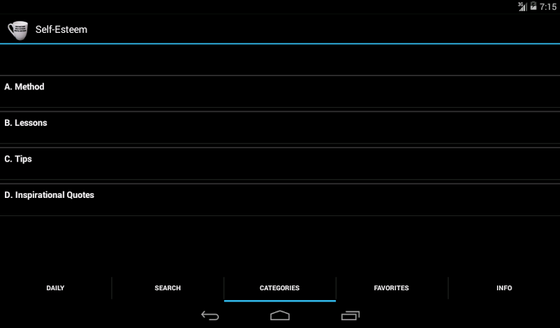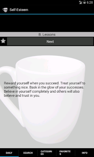 Analisi E Revisione Delle App Android: Self-Esteem. Method and Quotes, Sviluppato Da TapCoder. Elencato Nella Categoria Lifestyle. La Versione Corrente È 2.13, Aggiornata L' 03/06/2014 . Secondo Le Recensioni Degli Utenti Su Google Play: Self-Esteem. Method and Quotes. Ottenuto Oltre 10 Mille Installazioni. Self-Esteem. Method and Quotes Ha Attualmente Recensioni 148, Valutazione Media 3.8 Stelle