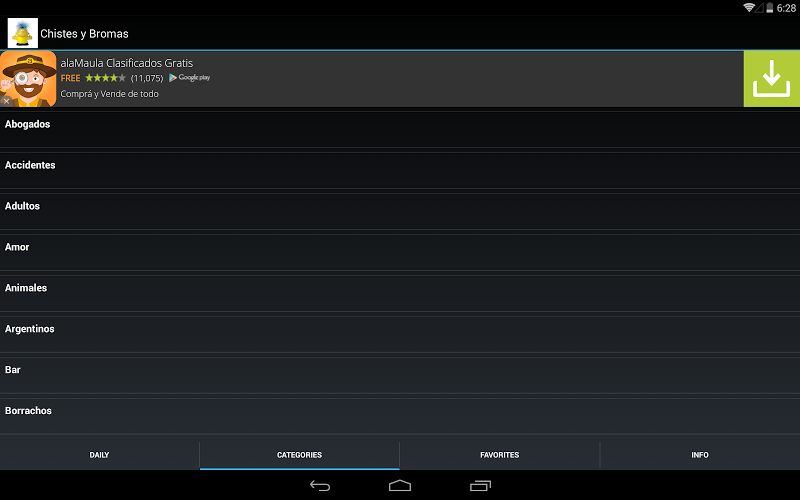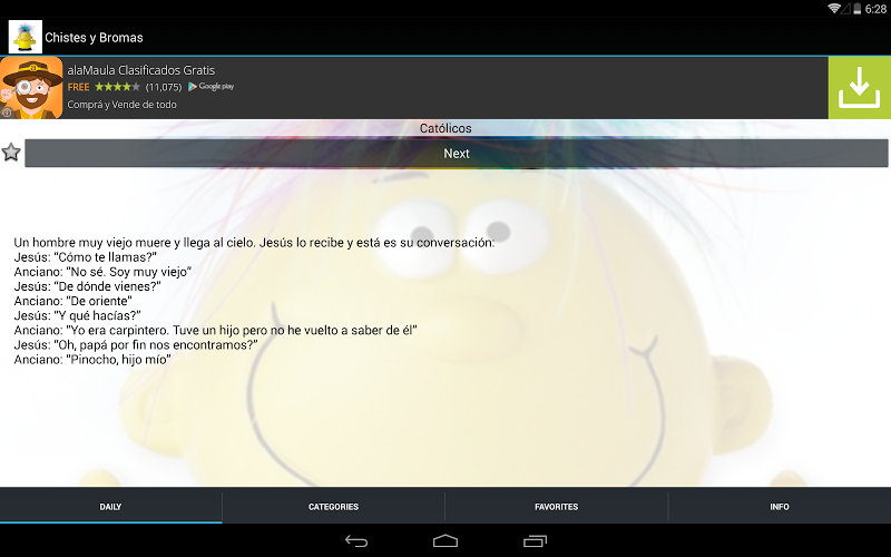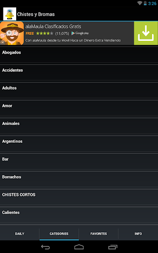 Analisi E Revisione Delle App Android: Chistes y Bromas, Sviluppato Da TapCoder. Elencato Nella Categoria Intrattenimento. La Versione Corrente È 10.15, Aggiornata L' 15/01/2015 . Secondo Le Recensioni Degli Utenti Su Google Play: Chistes y Bromas. Ottenuto Oltre 32 Mille Installazioni. Chistes y Bromas Ha Attualmente Recensioni 146, Valutazione Media 3.3 Stelle
