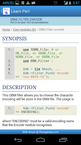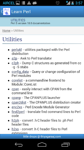 Documentazione Perl Offline completa Nuova applicazione lanciata per Perl, è possibile scaricare il modulo questo url https://market.android.com/details?id=com.thiyagaraaj.perl impara Perl è il manuale offline completo di Perl.it include...