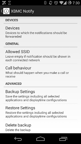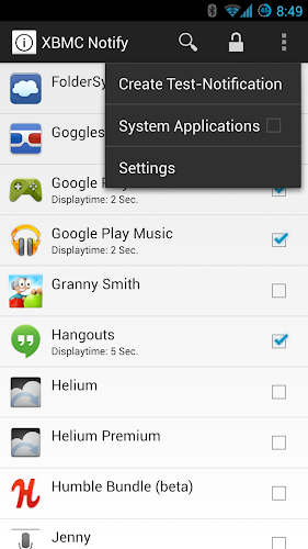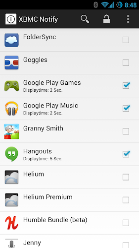 - seleziona le singole app le cui le notifiche dovrebbero essere visualizzate sul tuo mediacenter