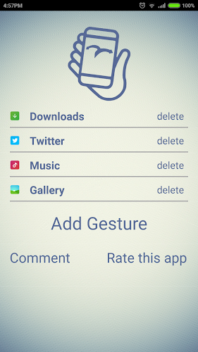apri le app semplicemente spostando il telefono! solo 4 semplici passaggi: apri il controller dei gesti, scegli quale app desideri aprire con il gesto specificato, esegui il gesto che desideri associare a questa app, lascia che il controller dei gesti venga eseguito in background. questo è tutto. completamente personalizzabile: puoi avviare tutte le app sul tuo telefono ed eseguire qualsiasi tipo di gesto.Ora puoi anche riattivare lo schermo del telefono semplicemente spostando il telefono. non funzionerà finché hai il telefono in tasca.