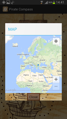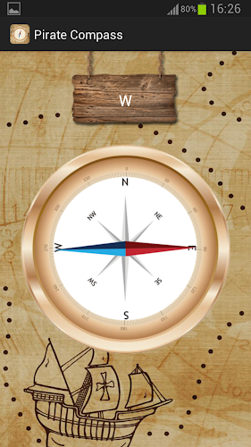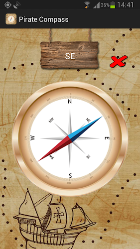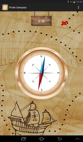Pirata della bussola è un applicazione bussola gratuito, che utilizza il sensore magnetico del dispositivo per aiutarvi a navigare. È stazionario rispetto alla superficie della terra.La "X" rossa viene utilizzata per mostrare una mappa di Google per l'utente.
