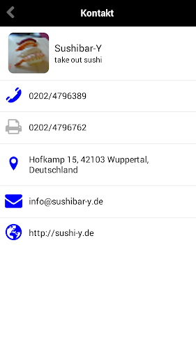 Sushi-Ordine rese più facile! Con questa app ottieni le ultime informazioni su sushibar-y come orari di apertura, nuova offerta, promozioni UVM. nel menu ”online” possono dare direttamente l'ordine per raccogliere o consegnare a casa nell'area di consegna.Ogni cliente registrato ci riceve per ogni ordine un crediti per pari al 10% della somma ordinata.