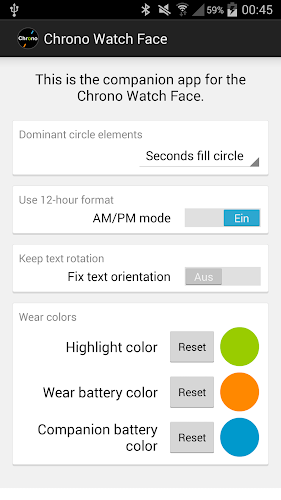 Analisi E Revisione Delle App Android: Chrono Watch Face for Wear, Sviluppato Da Codejugglers. Elencato Nella Categoria Personalizzazione. La Versione Corrente È 1.1.9, Aggiornata L' 08/04/2015 . Secondo Le Recensioni Degli Utenti Su Google Play: Chrono Watch Face for Wear. Ottenuto Oltre 44 Mille Installazioni. Chrono Watch Face for Wear Ha Attualmente Recensioni 721, Valutazione Media 4.0 Stelle
