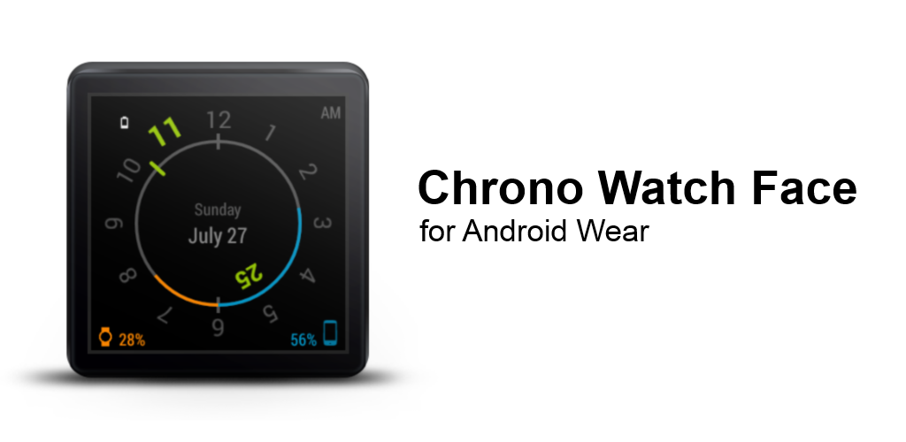 Chrono Face per Android Indossare display livelli di batteria per usura e mobile.