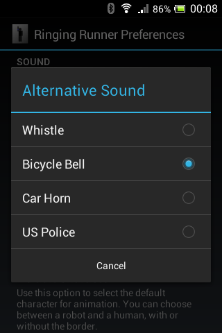 Se si desidera aggiungere più del vostro gusto personale per l'applicazione, andare alle preferenze e scegliere qualche altro suono al posto del suono del campanello predefinito di biciclette, di sceglierne una differente personaggio animato, impostare l'angolo di attivazione, modificare la sensibilità del sensore, ecc