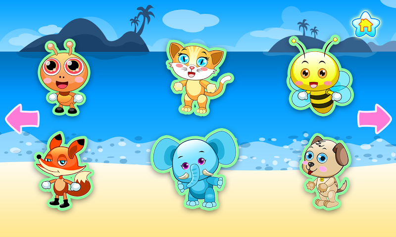 子供向けのロジック パズル ゲームには、幼児が動物を認識したり、ペットの名前を覚えたりできるように、おなじみの動物のコレクションが含まれています。アリ、ミツバチ、猫、犬、ゾウ、キツネ、カバ、クラゲ、サル、イッカク、タコ、ペンギン、ウズラ、ウサギ、カメ、ユニコーン、クジラ、レントゲン魚など、とてもかわいいです。