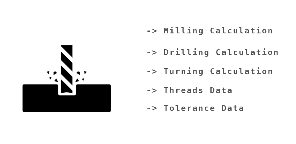 iMachinistはあなたのためにあなたの製粉、穴あけと旋削作業のために切削速度、RPM、送り速度ともっと計算するCNC電卓アプリを使うのが簡単です。iMachinistには、穴と軸の公差とさまざまなねじ山のデータベースも含まれています。