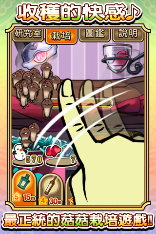 滑過畫面一口氣收穫整片密集生長的菇菇們,這種快感讓人上癮。