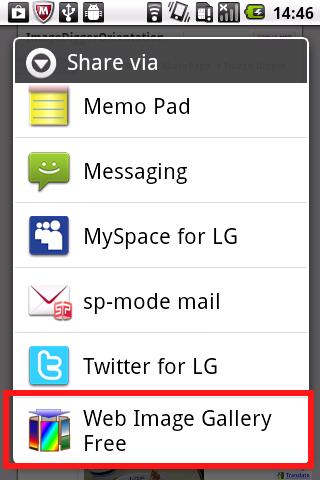 menu -> more -> share page -> Web Image Gallery