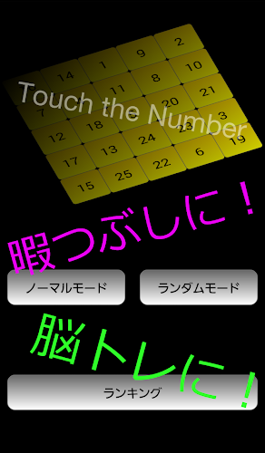 Easy operation of the push of a 25-digit number. Brain Training and is perfect for killing time! • With 2 different game modes: Normal mode] of the play with simple operation, touch the numbers 1 to 25 in order! It is the array of large classic. Touch