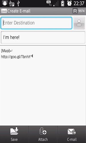 ■ Easy to useSimply tap the icon for android phone and paste the URL of the Google Map into E-mail text.