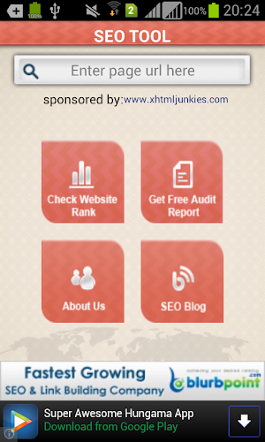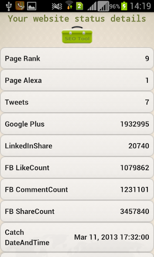 SEO 도구 응용 프로그램은 매우 빠르게 작동하므로 최상의 응용 프로그램 중 하나입니다. Page Rank, Alexa Rank, 등급 등 몇 초 안에 필요한 SEO 정보를 얻으려면 웹 사이트의 URL을 입력해야합니다. 무료 웹 사이트 감사 보고서에 가입하려면 이메일, 이름을 공유하십시오. , 웹 사이트 URL, 키워드, 전화 번호, 대상 국가 및 월 예산. 다음 24 시간 내에 이메일 계정에서 수동으로 준비된 세부 정보 감사 보고서를 받았습니다.제안, 불만 또는 앱 관련 문제에 대해 이메일을 보내 주시기 바랍니다. 감사하겠습니다.