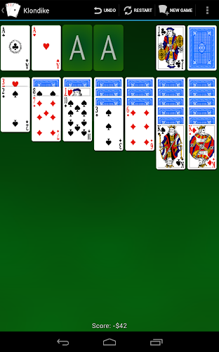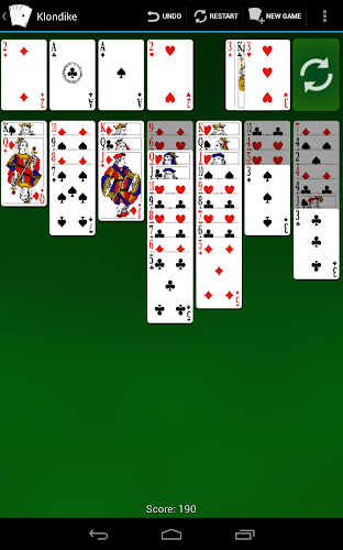 - Tableau의 모든 카드와 함께 Klondike Solitaire를 노출시킬 수 있습니다. 거래