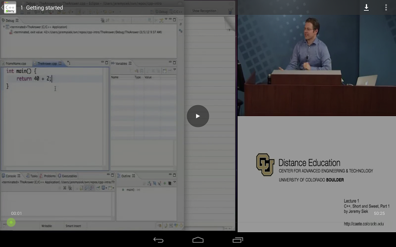 이 과정은 계획된 2 부 시퀀스의 1 부입니다. Part 1은 Accelerated C ++의 첫 7 개의 챕터, 특히 0-6 장을 다룹니다.이 과정은 각각 50-60 분의 6 개의 비디오로 구성됩니다.