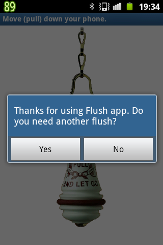 Paņemiet tālruni, turiet ierīci taisni un veiciet pārvietošanos tā, kā jūs izmantojat īstu tualetes vilkšanu, un jūs dzirdēsit vienu no piecām atšķirīgajām flush skaņu.