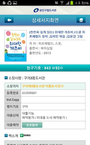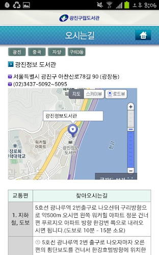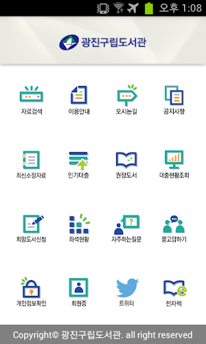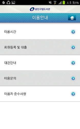 Gu lip libraries are to provide information to the knowledge and information that is diverse and newly created according to the knowledge society as diverse and specialized services to quickly to users, and to perform the role as information centers providing effective obliged. Gwangjin lip librarythe app consists of the following menu 0.1.