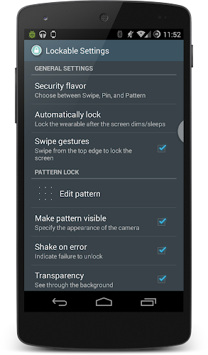 The PIN and Pattern unlock makes Lockable the optimal, secure, and configurable lock screen solution for Android Wear.