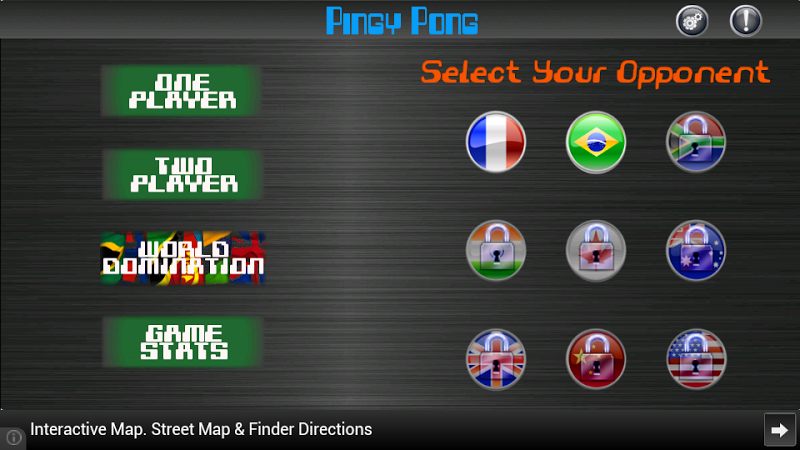 4) World Domination - Can you dominate the world of Ping Pong? Beat all 9 countries and tell the world about it.