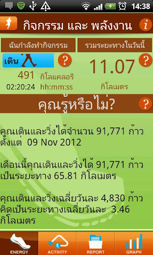 My Act is a result of research cooperation between Nectec, Faculty of Medicine of Chulalongkorn University and King Chulalongkorn Memorial Hospital of Thai Red Cross.My Act automatically detects and classifies your daily activity into 4 classes: sleep, rest, walk, and run. My Act employs signal processing of accelerometer data efficiently. My Act also interprets your activity and convert it to calorie usage information. My Act counts your walk and run steps automatically. My Act also calculates distance you gain with your daily walking and running. My Act displays history of your daily activity since you start the app.