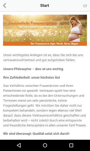 Emsländische Frauenarztpraxis- unser wichtigstes Anliegen ist es, dass Sie sich bei uns vertrauensvoll betreut und gut aufgehoben fühlen. Unsere Philosophie – dies ist uns wichtig: Ihre Zufriedenheit: unser höchstes Gut Das Verhältnis zwischen Frauenärzten und ihren Patientinnen ist speziell. Vertrauen spielt hier eine entscheidende Rolle, da es bei den Untersuchungen und Terminen meist um sehr persönliche, intime Fragestellungen geht. Wir möchten Sie daher nicht nur kompetent behandeln, sondern legen ebenso viel Wert darauf, dass dieses Vertrauensverhältnis geschaffen und beibehalten wird – nicht zuletzt durch eine entspannte und freundliche Atmosphäre in allen unseren fünf Praxen. Jetzt auch als offizielle App!We are currently offering version 1.0. This is our latest, most optimized version. It is suitable for many different devices. Free download directly apk from the Google Play Store or other versions we're hosting. Moreover, you can download without registration and no login required.